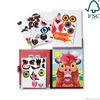 Zestaw sprawdzi się również w podróży, w poczekalni, w domu i u przyjaciół. Zestaw w formie zamykanej na rzep książeczki to wygoda użytkowania i wszystko w jednym miejscu. Z jednej strony mamy plansze ze zwierzętami mieszkającymi na farmie. Natomiast po lewej stronie dziecko ma ukryte naklejki wielokrotne, które można bez końca przyklejać na plansze i odklejać tworząc wesołe i zwariowane zwierzaki. Wystarczy zmienić zęby, oczy czy brwi, aby zwierzak wyglądał zupełnie inaczej. Dlatego ta zabawka dostarcza tak wiele zabawy.