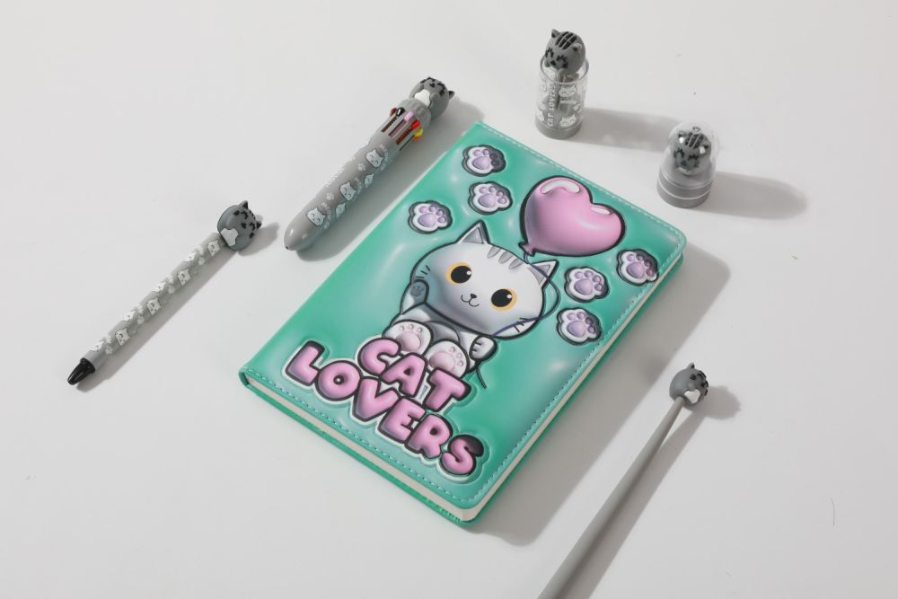 Elegancki notes A5 z uroczym kotkiem od włoskiej marki i-Total, to przede wszystkim praktyczny dodatek do biura, na spotkanie, do szkoły czy po prostu do domu.